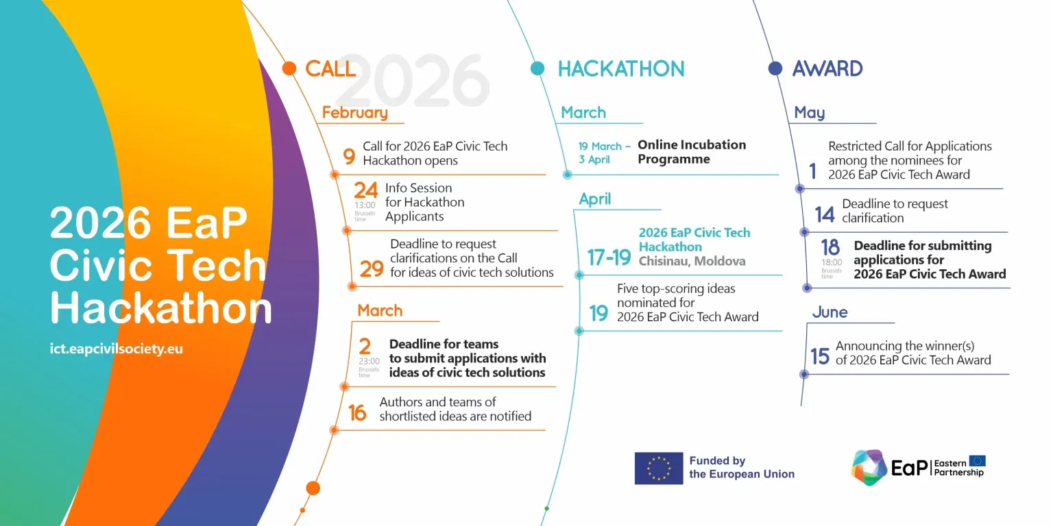 We are looking for teams with ideas of civic tech solutions to participate in our 2026 EaP Civic Tech Hackathon on 17-19 April in Chisinau, Moldova, and compete for the EaP Civic Tech Award!