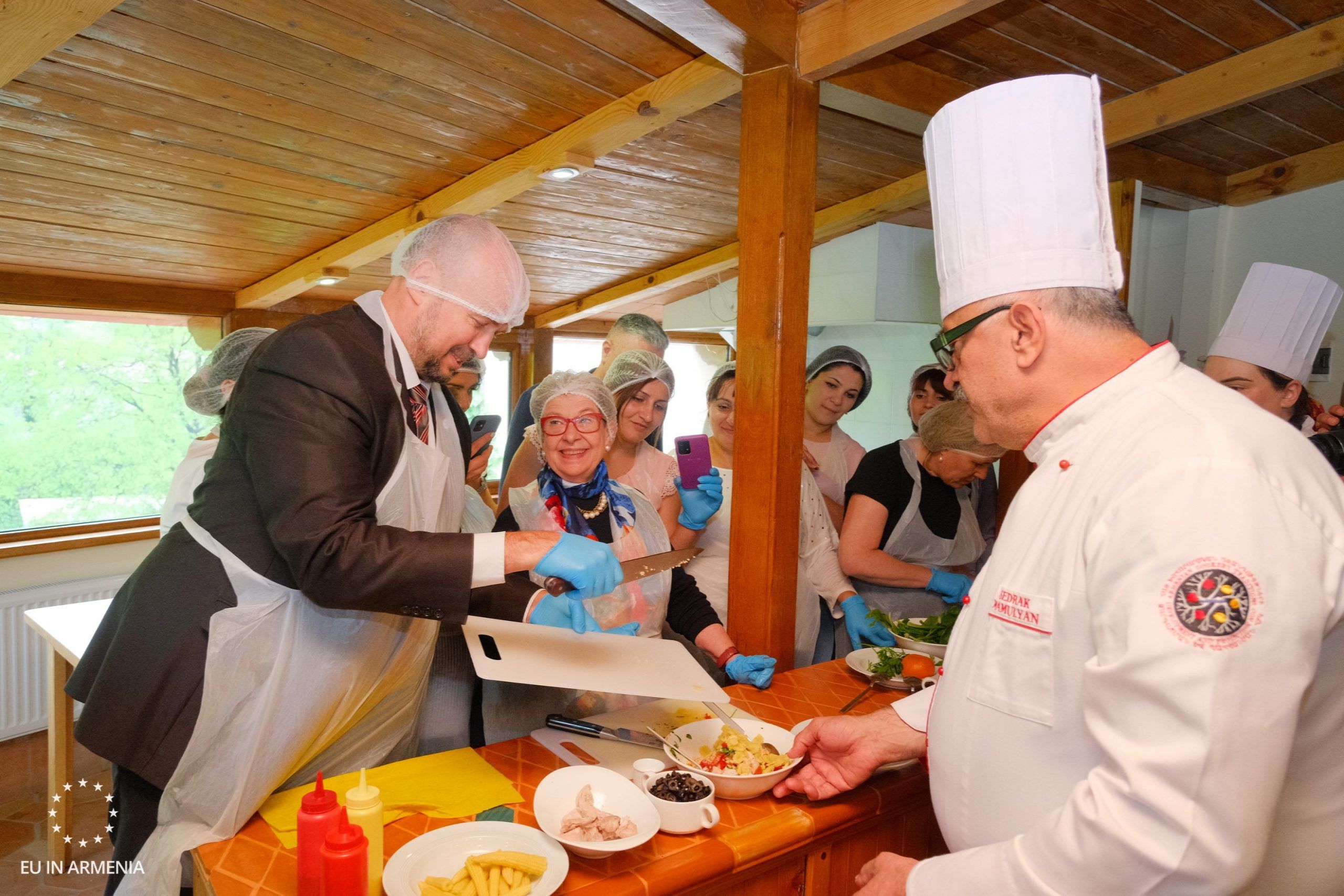 The last meeting of the visit, full of new projects and cornerstone events, was the meeting with women – beneficiaries of the REACT: relief and early recovery for people affected by conflict in Armenia Project. Ambassador Wiktorin and the visiting team participated in a master class on cooking. Under the guidance of Chef Sedrak Mamulyan, the participants enjoyed cooking together. The DG ECHO-funded project implemented by People in Need Armenia aims to assist the economic integration of conflict-affected populations.