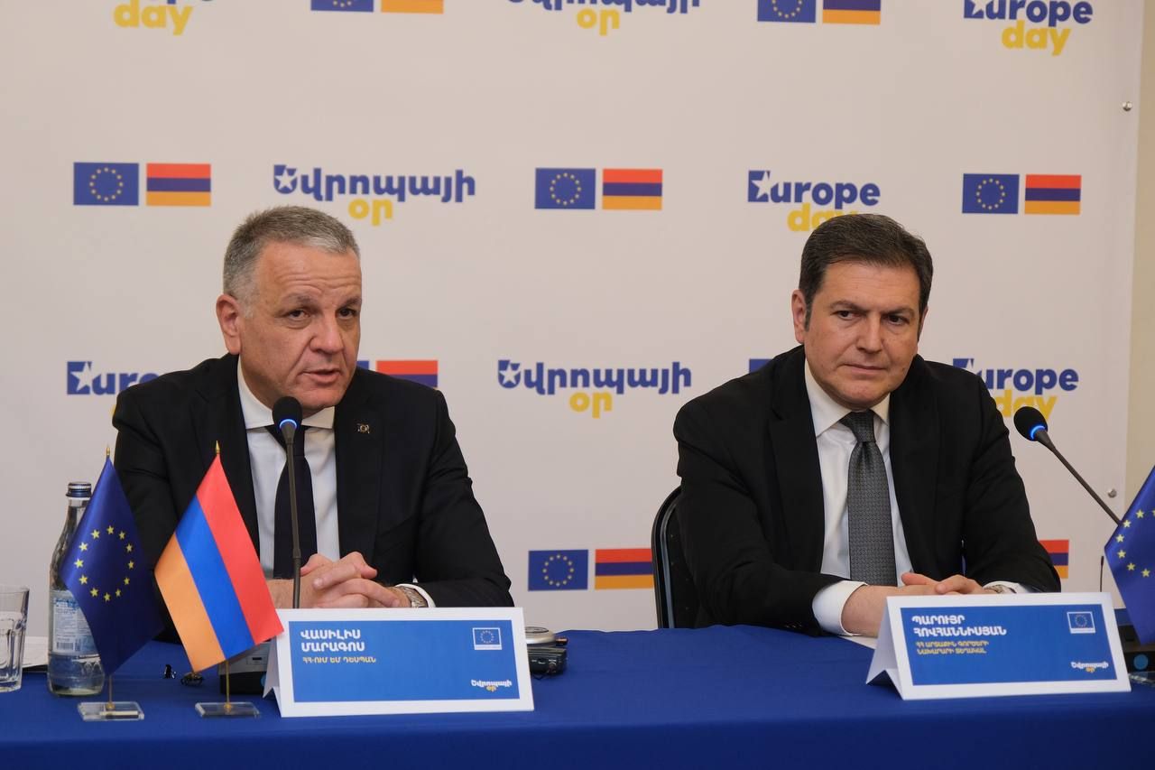 EU Ambassador Vassilis Maragos and Deputy Foreign Minister of Armenia, Paruyr Hovhannisyan, launched the celebration of Europe Day events at the Arno Babajanyan Concert Hall by opening of the “Europe is us” photo exhibition to illustrate the impact of EU-funded projects in Armenia.