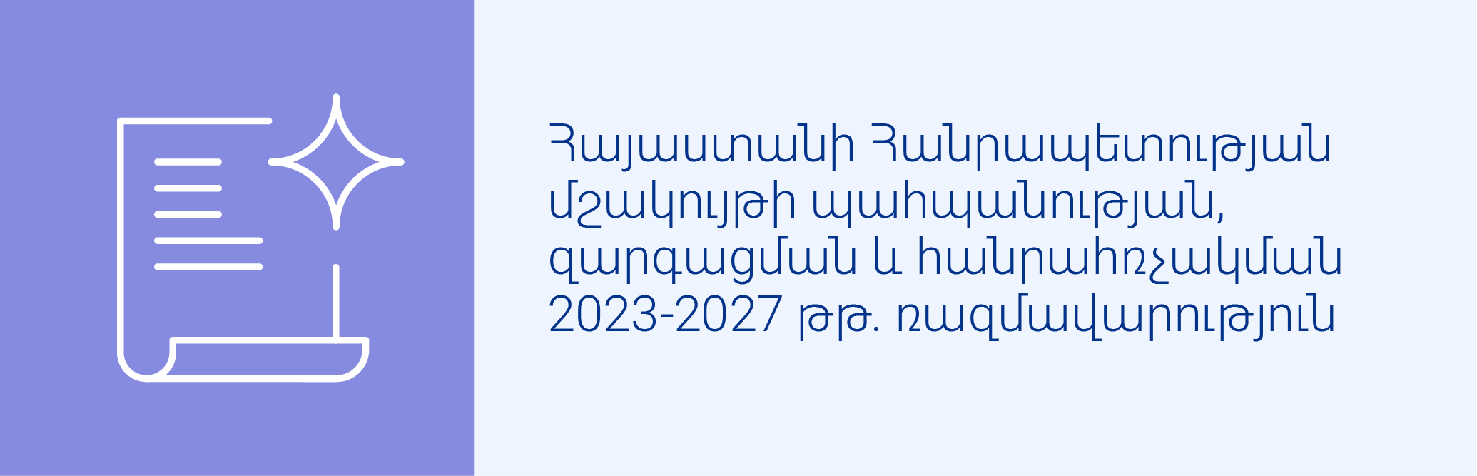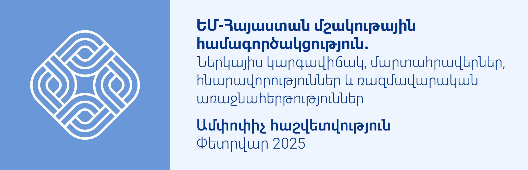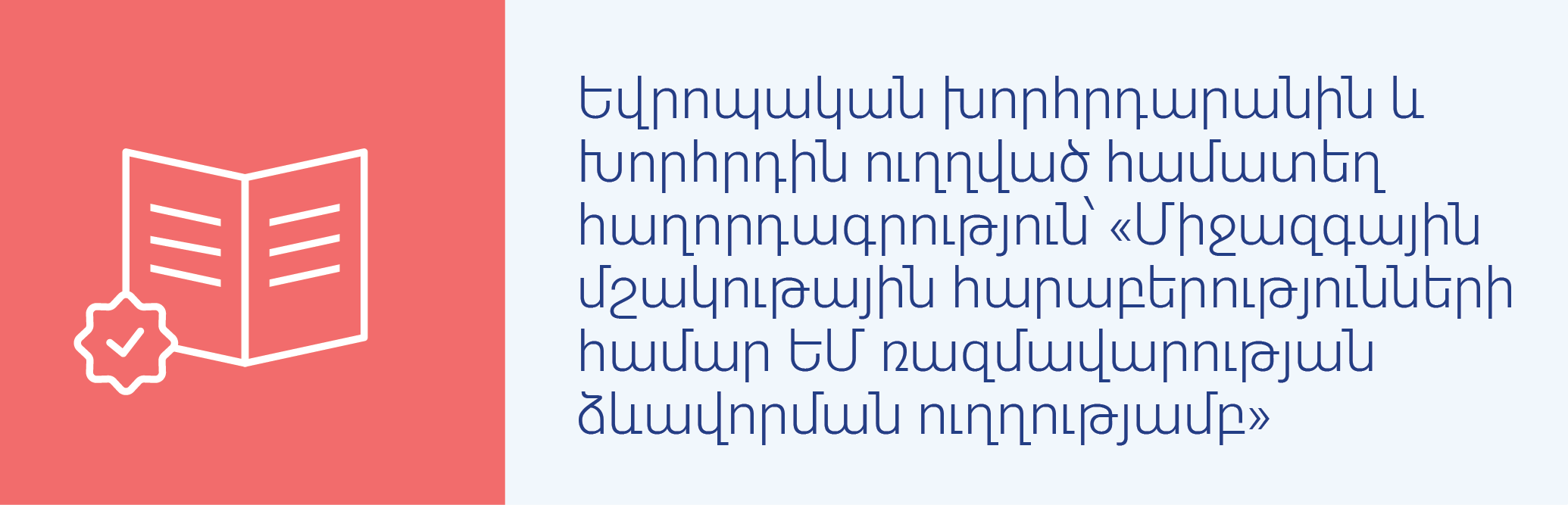 Եվրոպական միությունը, արտաքին քաղաքականության և զարգացմանն ուղղված իր ավելի լայն նախաձեռնությունների շրջանակում, կիրառում է տարբեր ռազմավարություններ և գործիքներ՝ աջակցելու Հայաստանի միջազգային մշակութային հարաբերություններին։