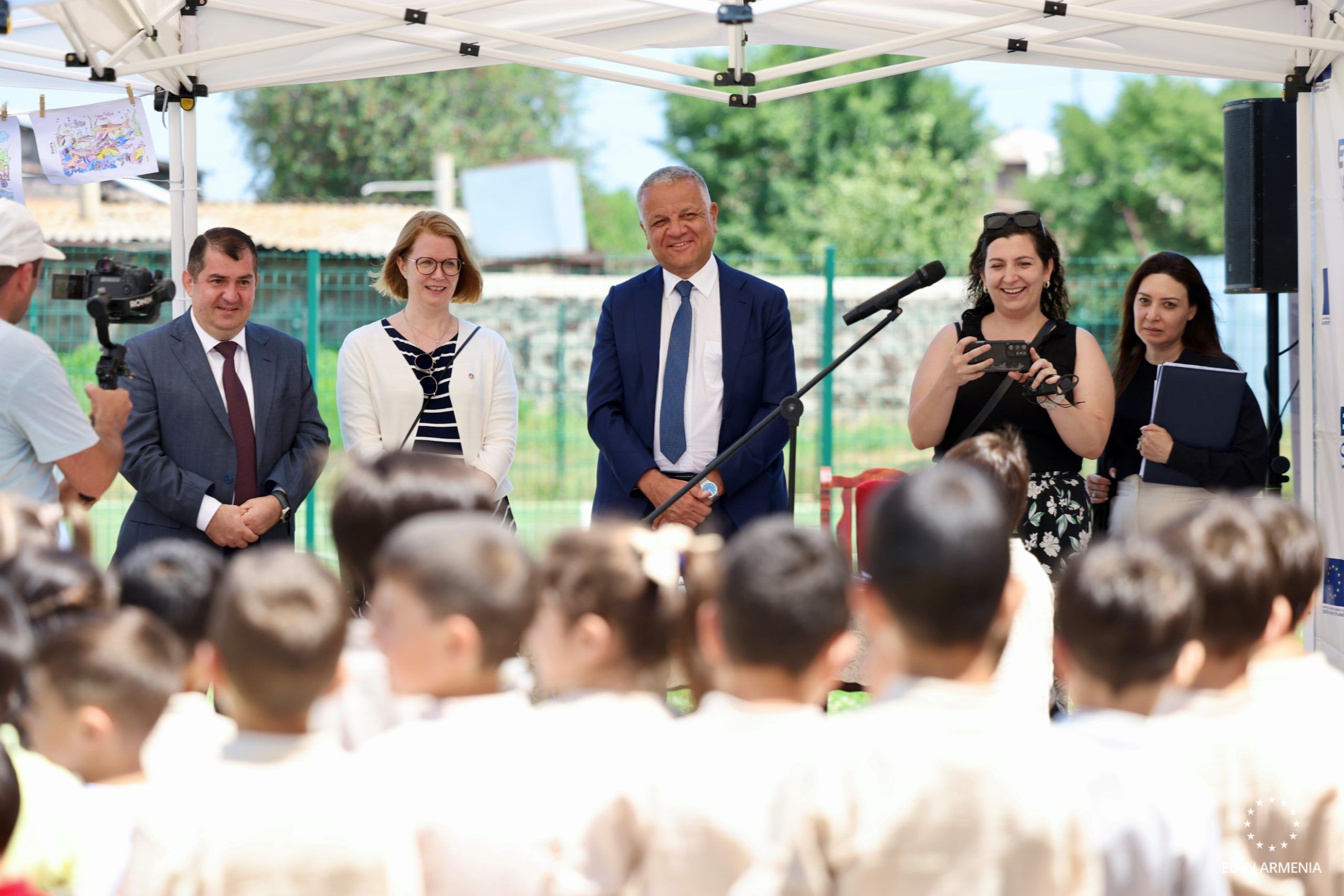 «Դիմակայուն Սյունիք Թիմ Եվրոպա» նախաձեռնության շրջանակներում նրանք հունիսի 19-ին Սյունիքի մարզի Տեղ համայնքում մասնակցել են համայնքի դիմակայունության ամրապնդմանն ուղղված երկու նշանակալի ենթակառուցվածքային ծրագրերի` 80 կՎտ/ժ հզորությամբ նոր արևային ֆոտովոլտային կայանի և ժամանակակից ոռոգման համակարգի պաշտոնական բացման արարողությանը։