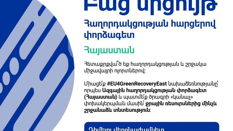 Կոչ – Ազգային հաղորդակցության փորձագետ (Հայաստան) – EU4Green Recovery East