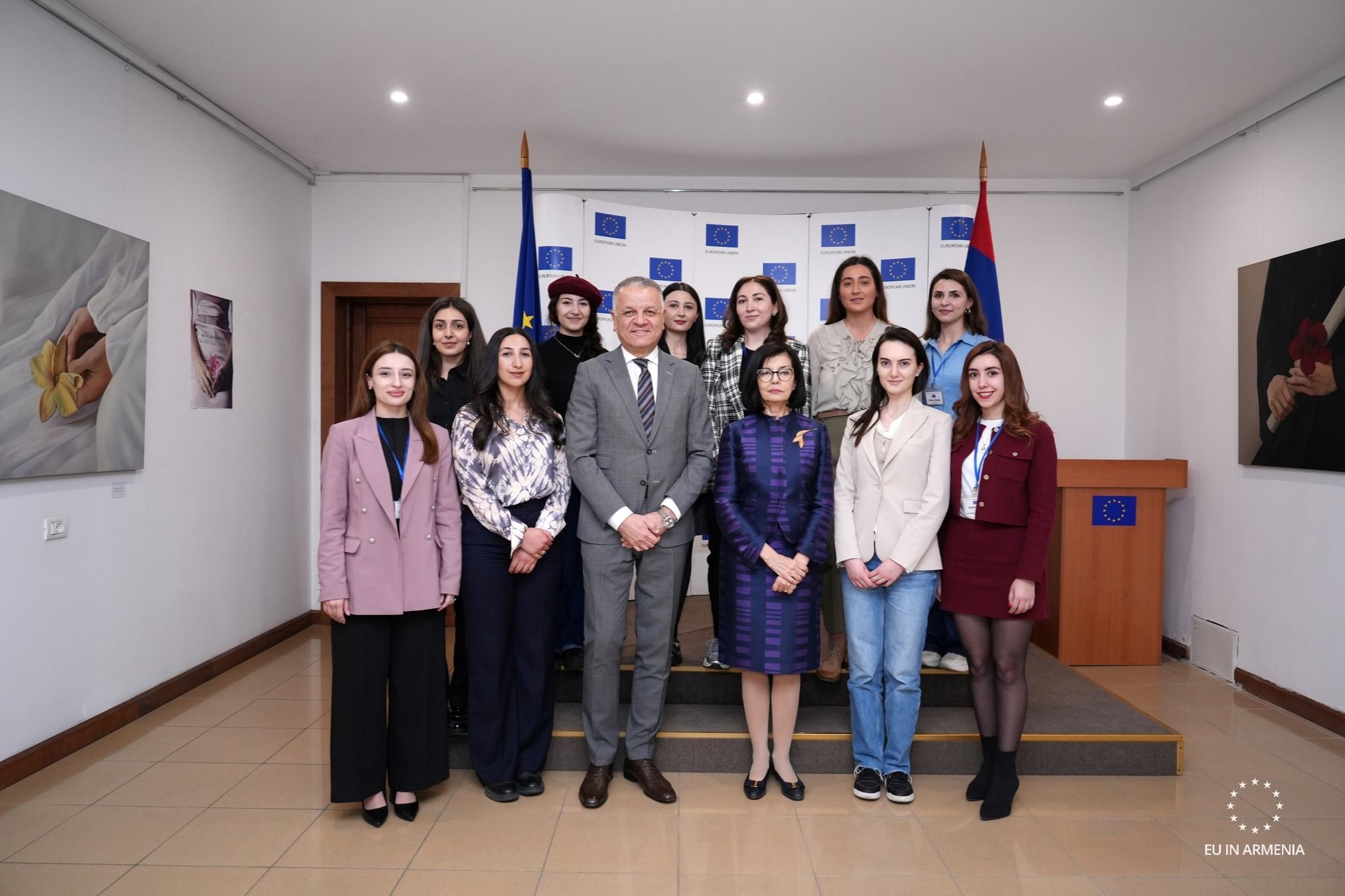 Ms Meglena Kuneva, former EU Commissioner and Deputy Prime Minister of Bulgaria, currently a lecturer at the European External Action Service’s Diplomatic Academy, visited the EU Delegation to Armenia, engaging in discussions with Young European Ambassadors. The meeting focused on leadership, addressing challenges, and exploring new opportunities for youth in the region. Known for her extensive experience in European politics, Ms Kuneva shared valuable insights, motivating the young ambassadors to take an active role in shaping the future.