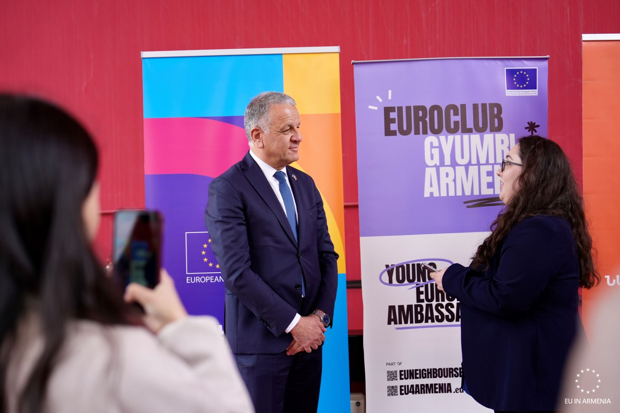 On 16 May EU Ambassador Vassilis Maragos participated in EuroBus event in Oshakan. Organised by the YEAs EuroClub, this interactive outdoor activity brought together local youth in Oshakan and representatives of DRONI Youth Association from Georgia for a fun and engaging journey through European identity and culture.