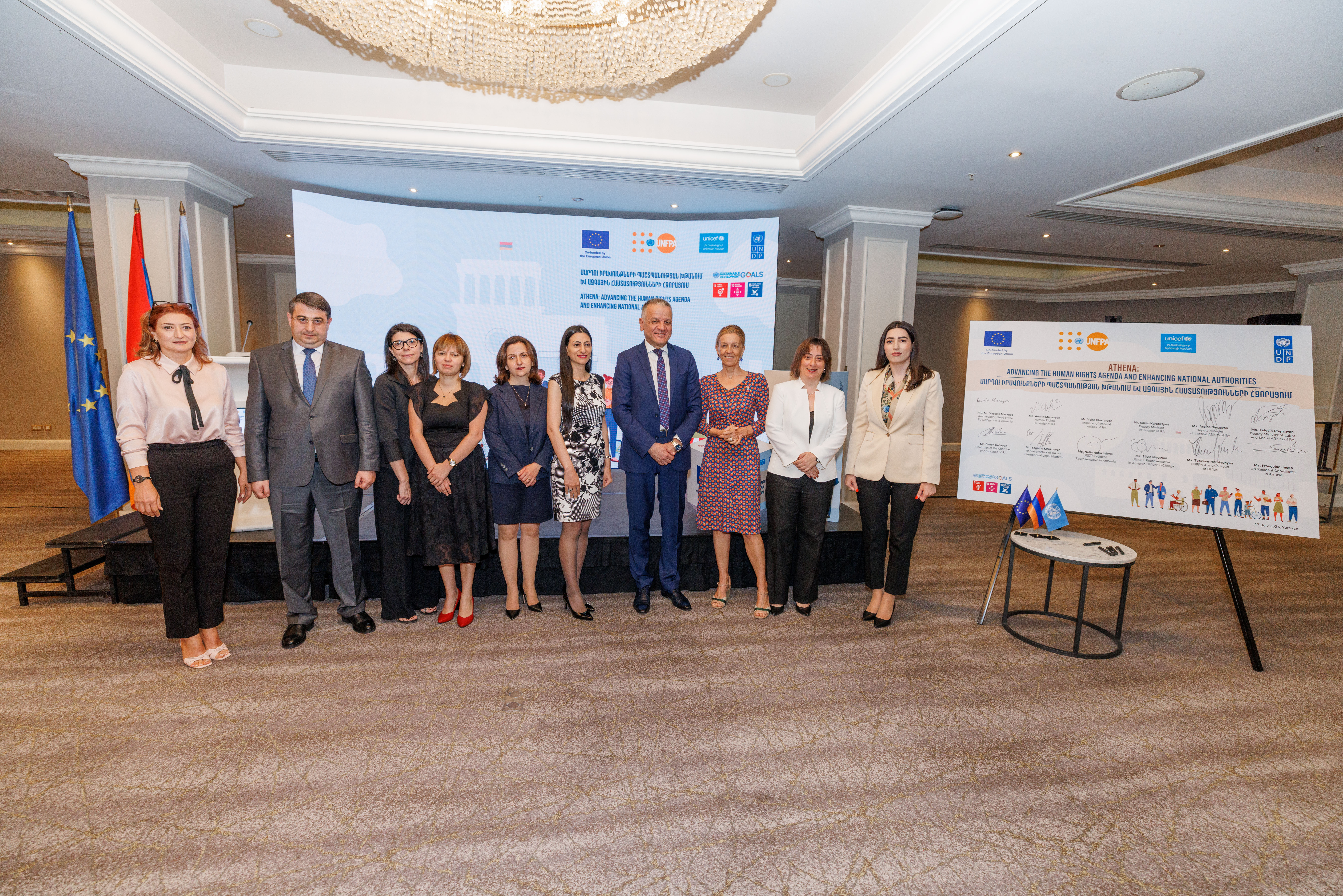 The “ATHENA: Advancing the Human Rights Agenda and Enhancing National Authorities” project builds on the results of the European Union funded “Accountable Institutions and Human Right Protection in Armenia” project implemented by UNDP, UNICEF, UNFPA and OSCE in 2021-2024. Drawing on valuable lessons learned and partnerships, ATHENA aims to strengthen human rights protection and the rule of law in Armenia. The Project focuses on enhancing the institutional capacities and strategic communication of target institutions, including the Human Rights Defender’s Office (HRDO), Ministry of Justice (MOJ), Office of the Representative on International Legal Matters (OSR), Ministry of Labour and Social Affairs, Ministry of Internal Affairs, Chamber of Advocates and Public Defender’s Office for better human rights protection, good governance, and effective institutional performance.